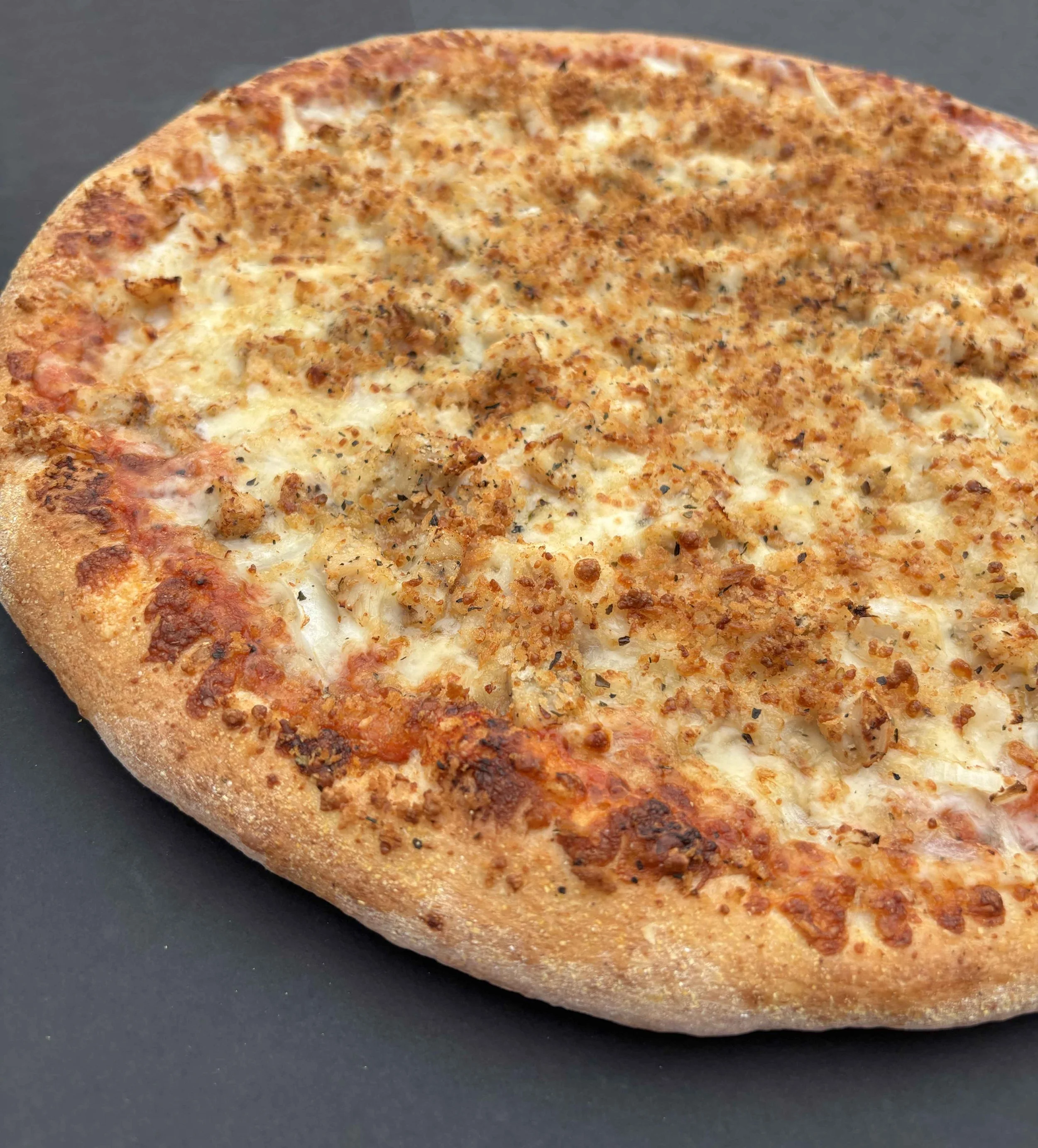 (extra red sauce) / extra chicken / onion / fontina / mozzarella / parm crunch topping